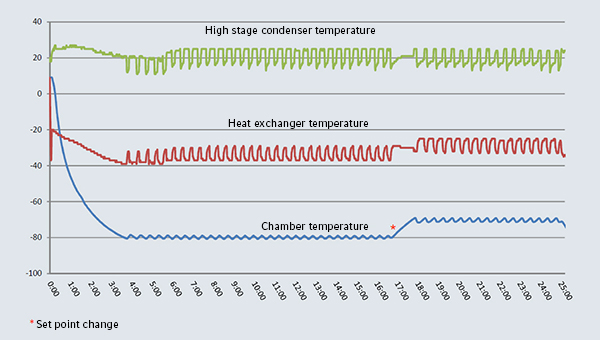 超低温冰箱的性能基于其冷却贵重样品的能力。评估冷冻冰箱性能zui明显的方面之一是下拉时间到-80°C以及打开门后冷冻冰箱恢复所需的时间。